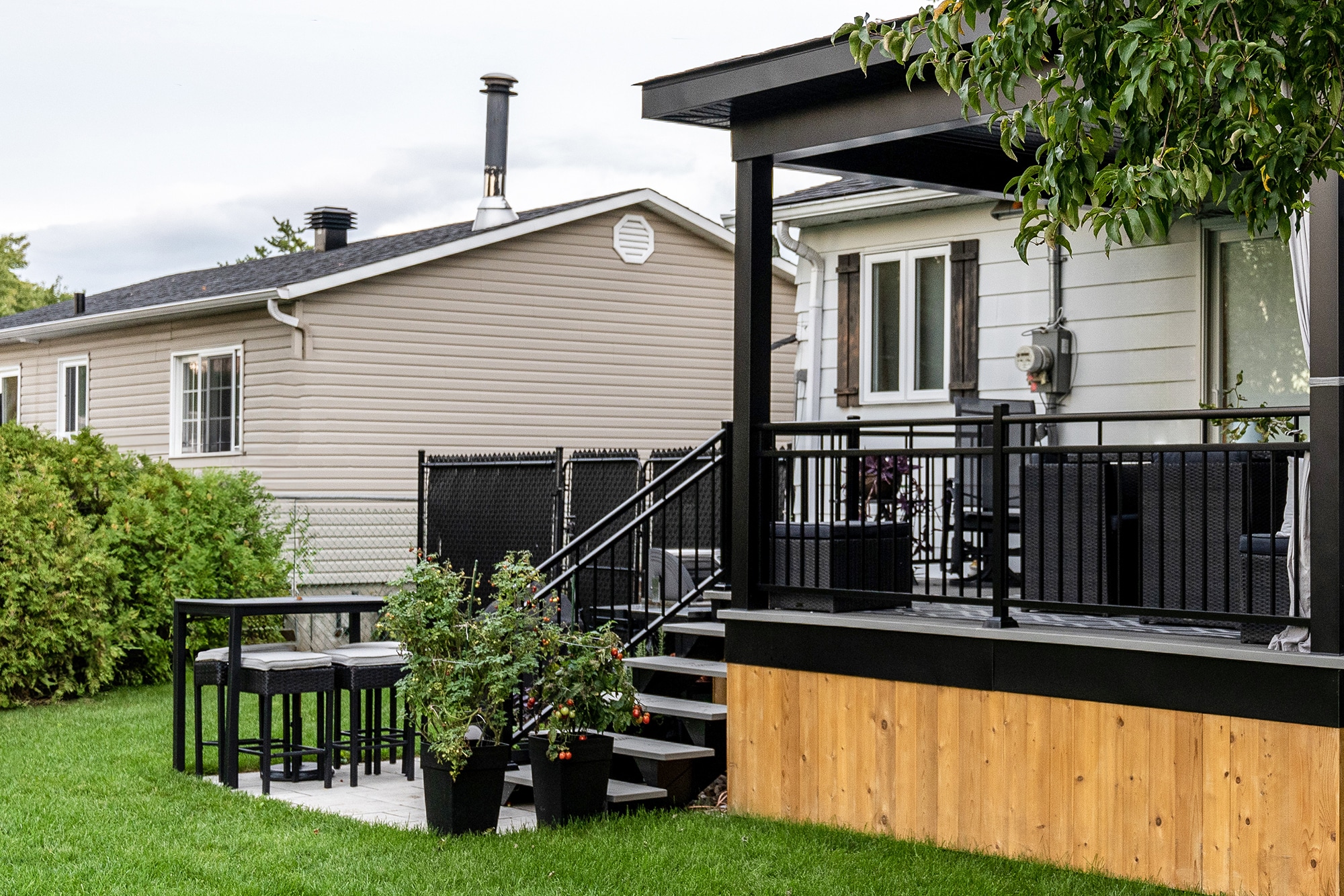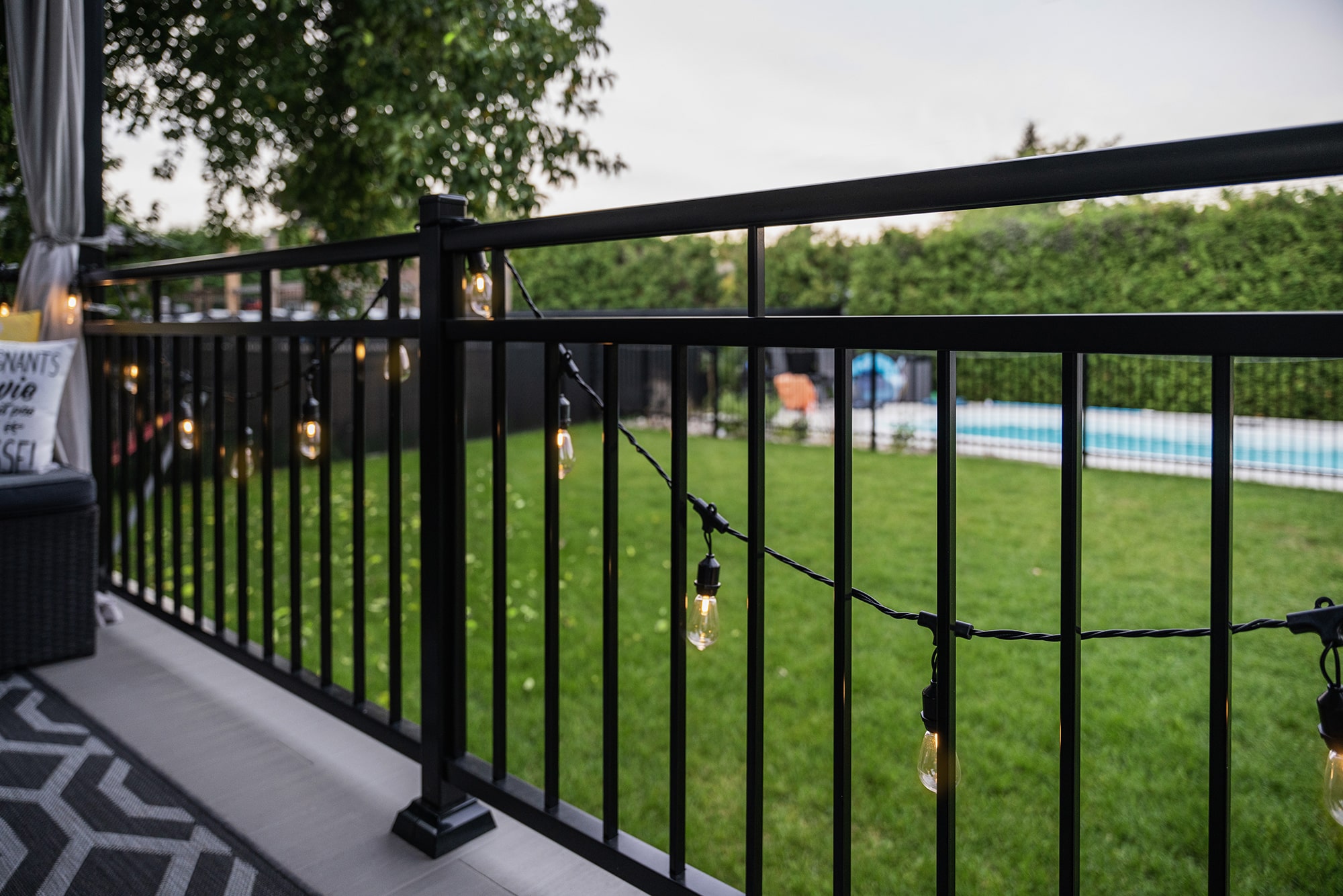 This project on Vinet Boulevard in Beloeil showcases a fully secured patio with our Patrimoine railing, renowned for its classic, timeless design. Installed around the terrace and staircase, it blends in perfectly with the outdoor space, offering a meticulous finish and unfailing strength.