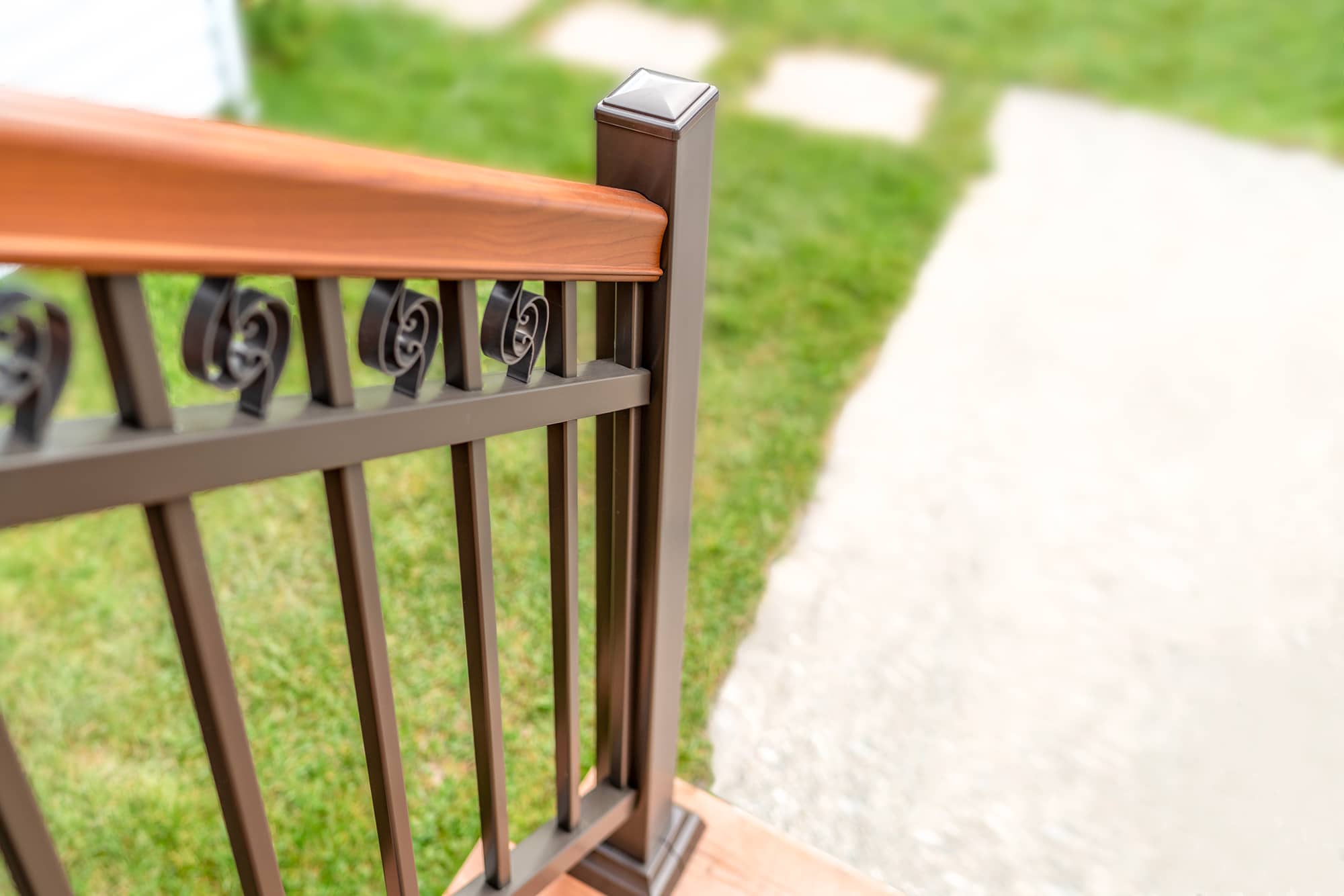 Superior durability: Made entirely of aluminum and protected by a high-quality powder-coating, this model won’t rust or chip, and requires no painting or staining, even with the handrail’s “wood effect”.
