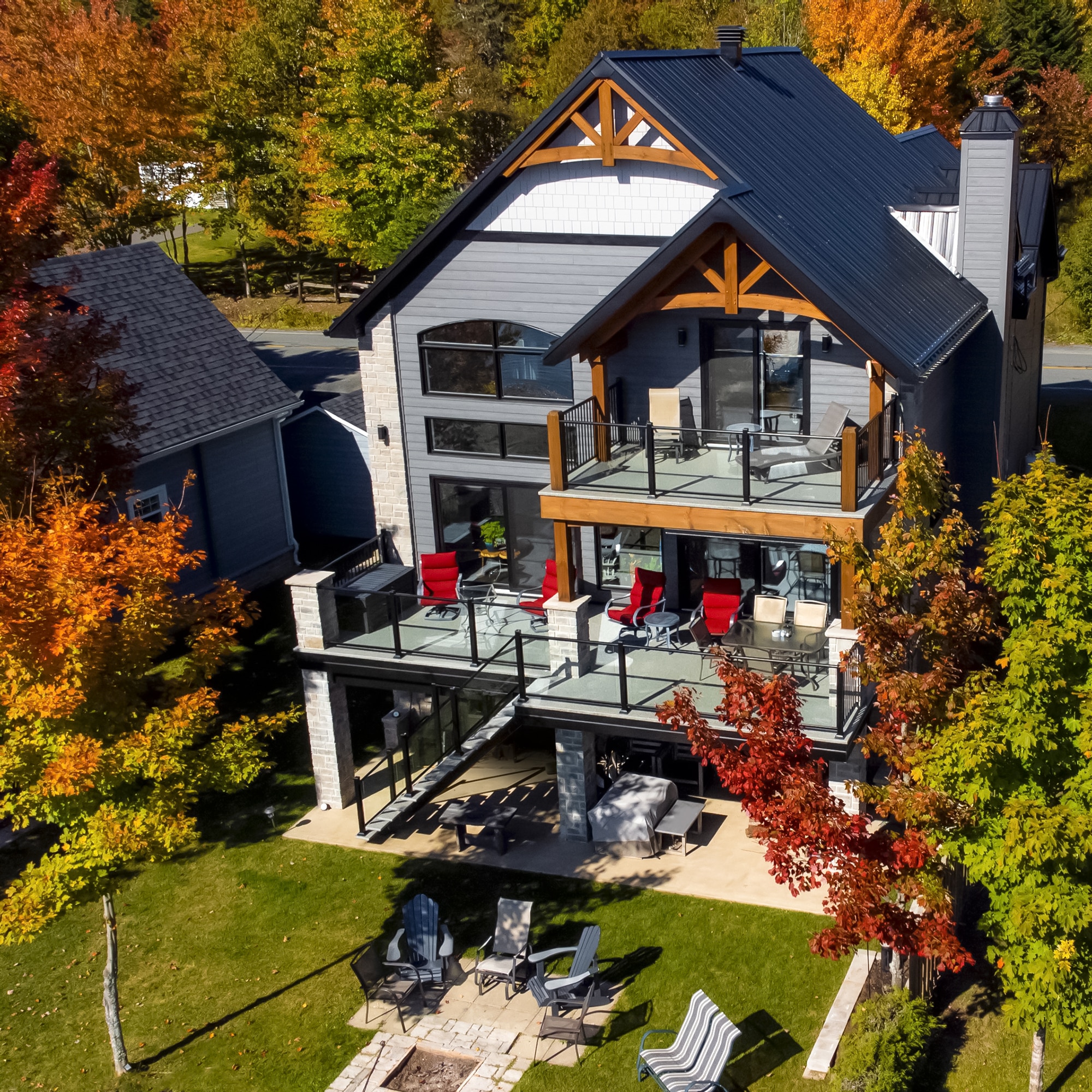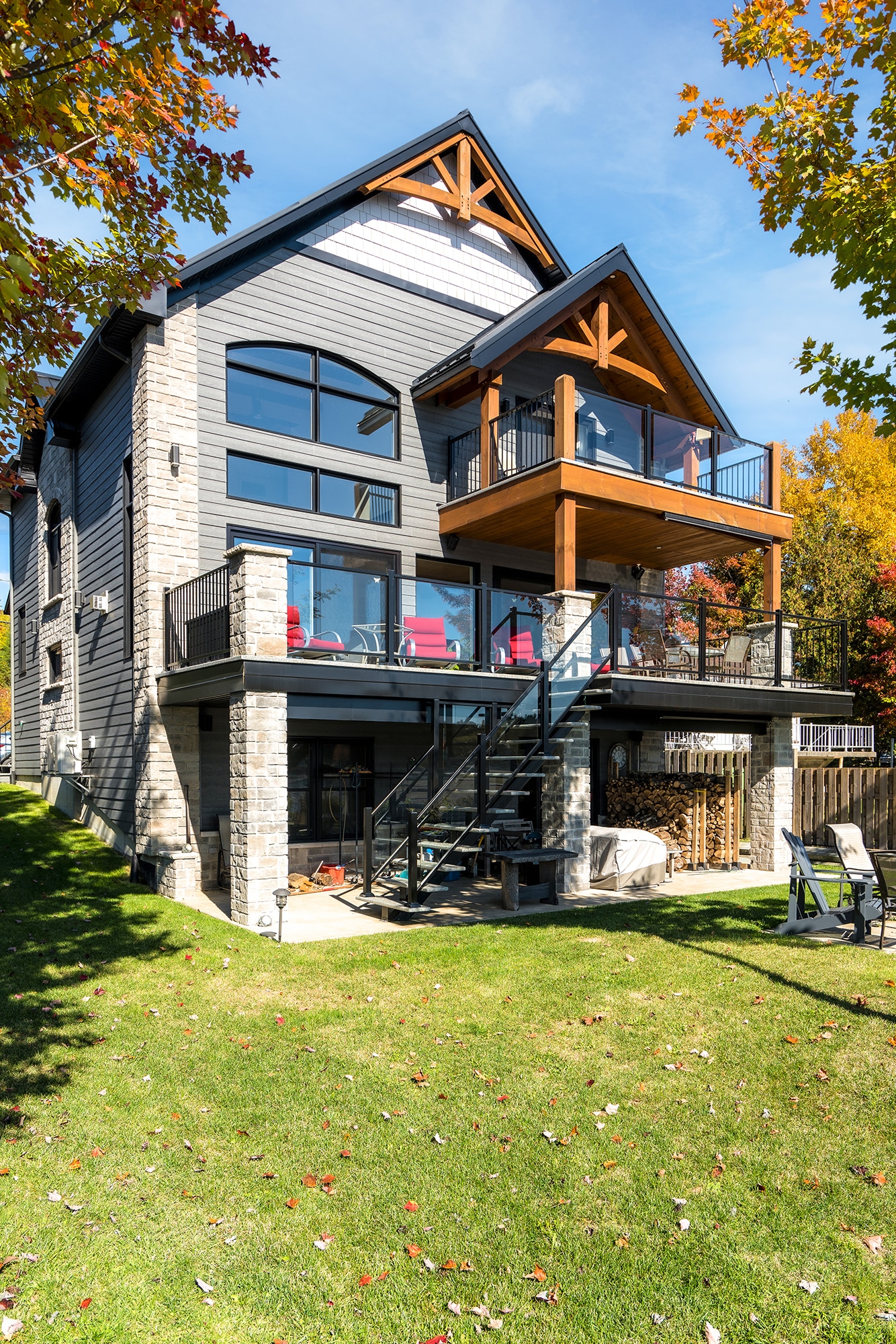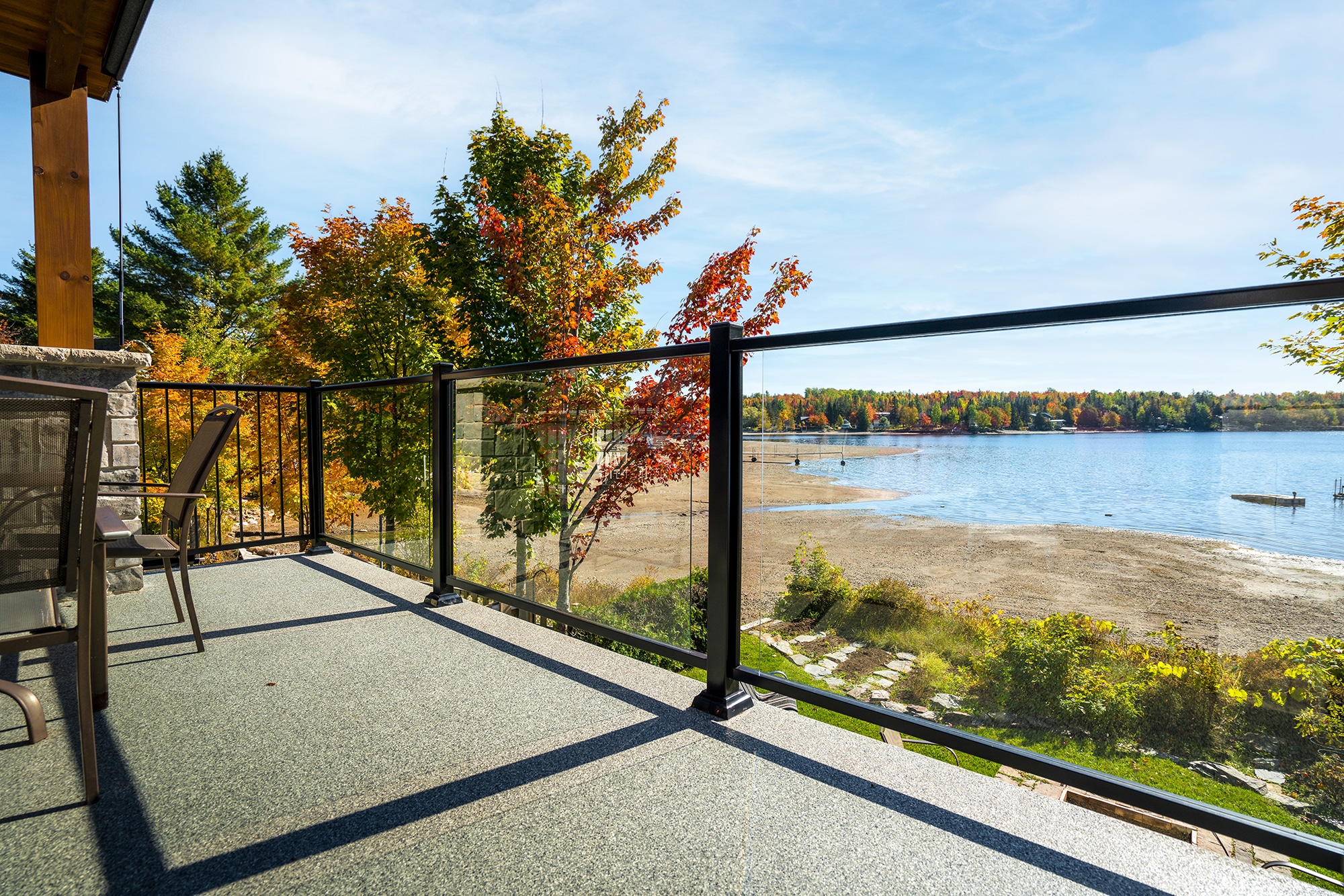 This major project on Chemin du Cerf in Adstock illustrates the versatility and distinction of the Murano model in an upscale lakeside environment. The challenge was to secure several levels of outdoor balconies and stairs while maintaining a consistent aesthetic and maximum view of the landscape. The Murano railing was selected for its robustness and framed design, which blends perfectly with the modern chalet-style architecture.