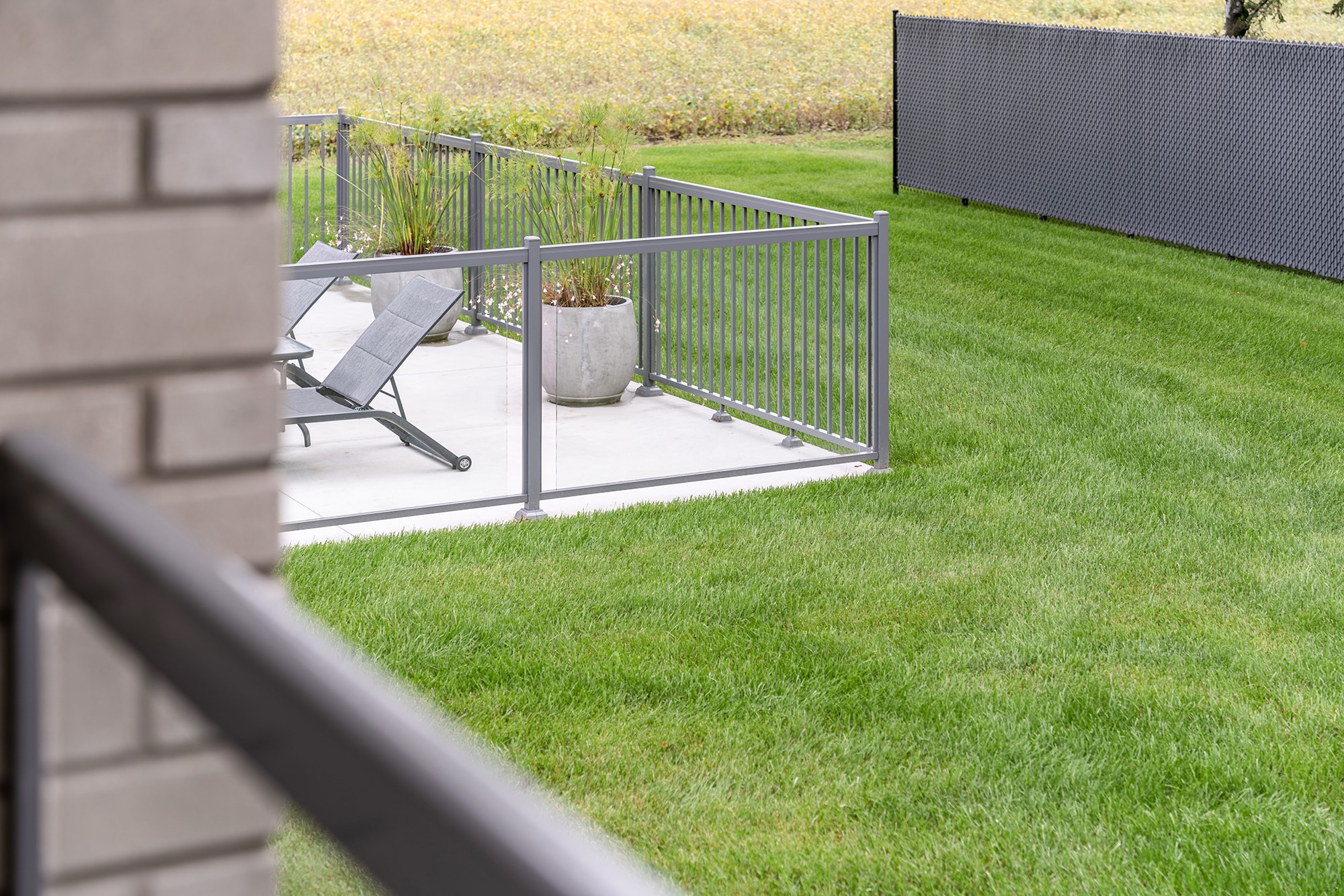 Standard aluminum railing: installed to complement the fence with a sober, sturdy design, ideal for areas requiring greater privacy or a reinforced structure.