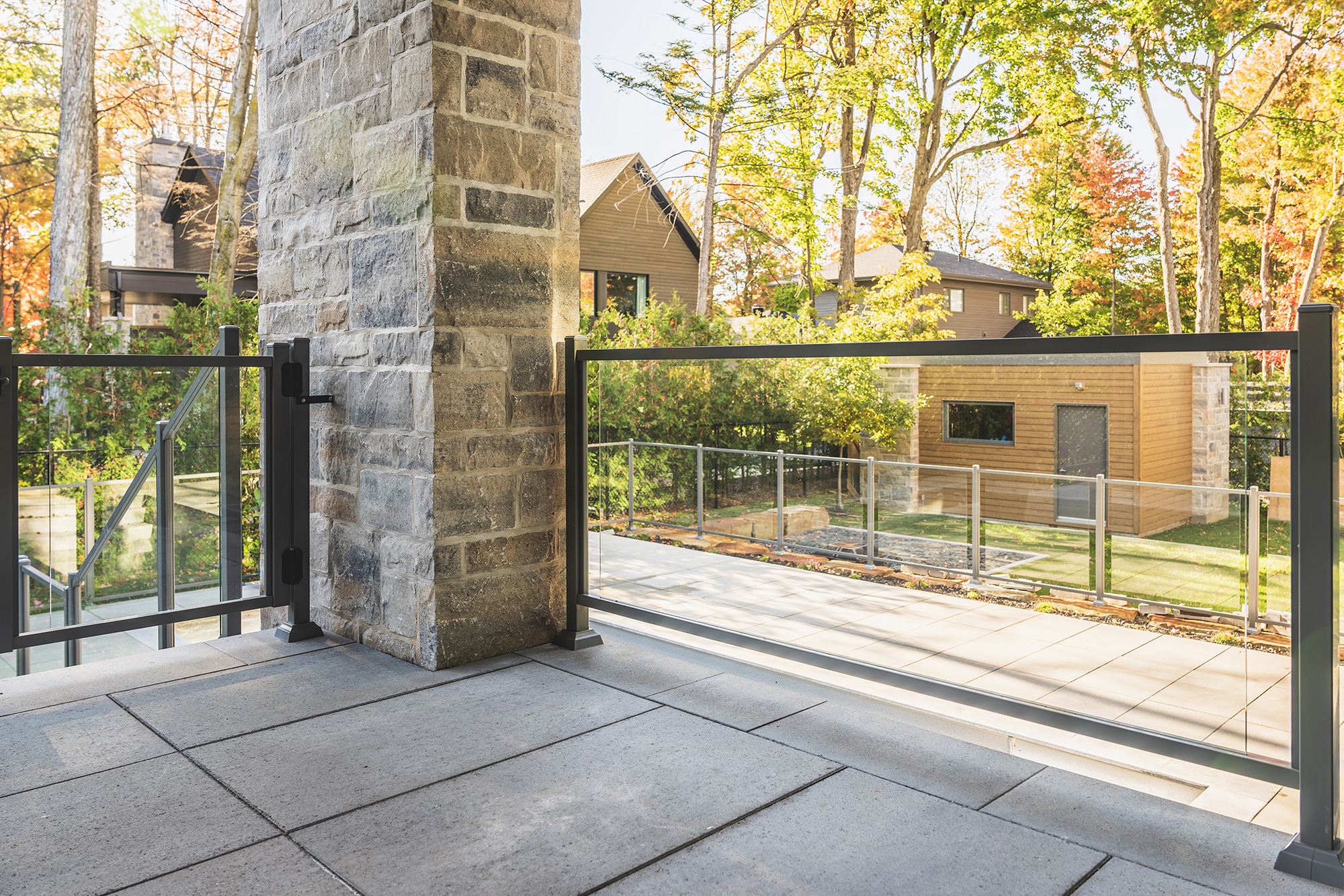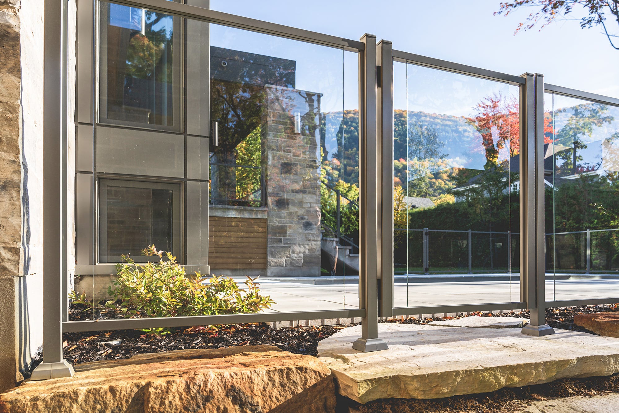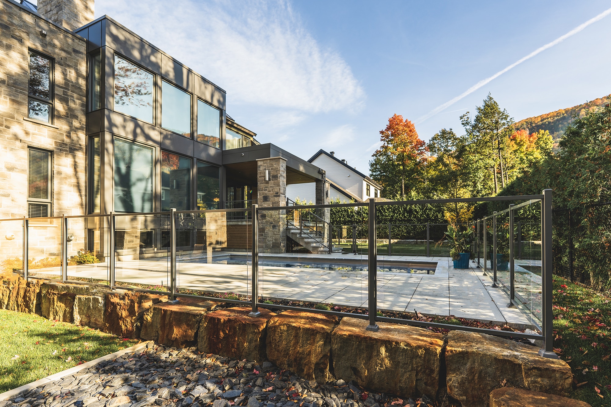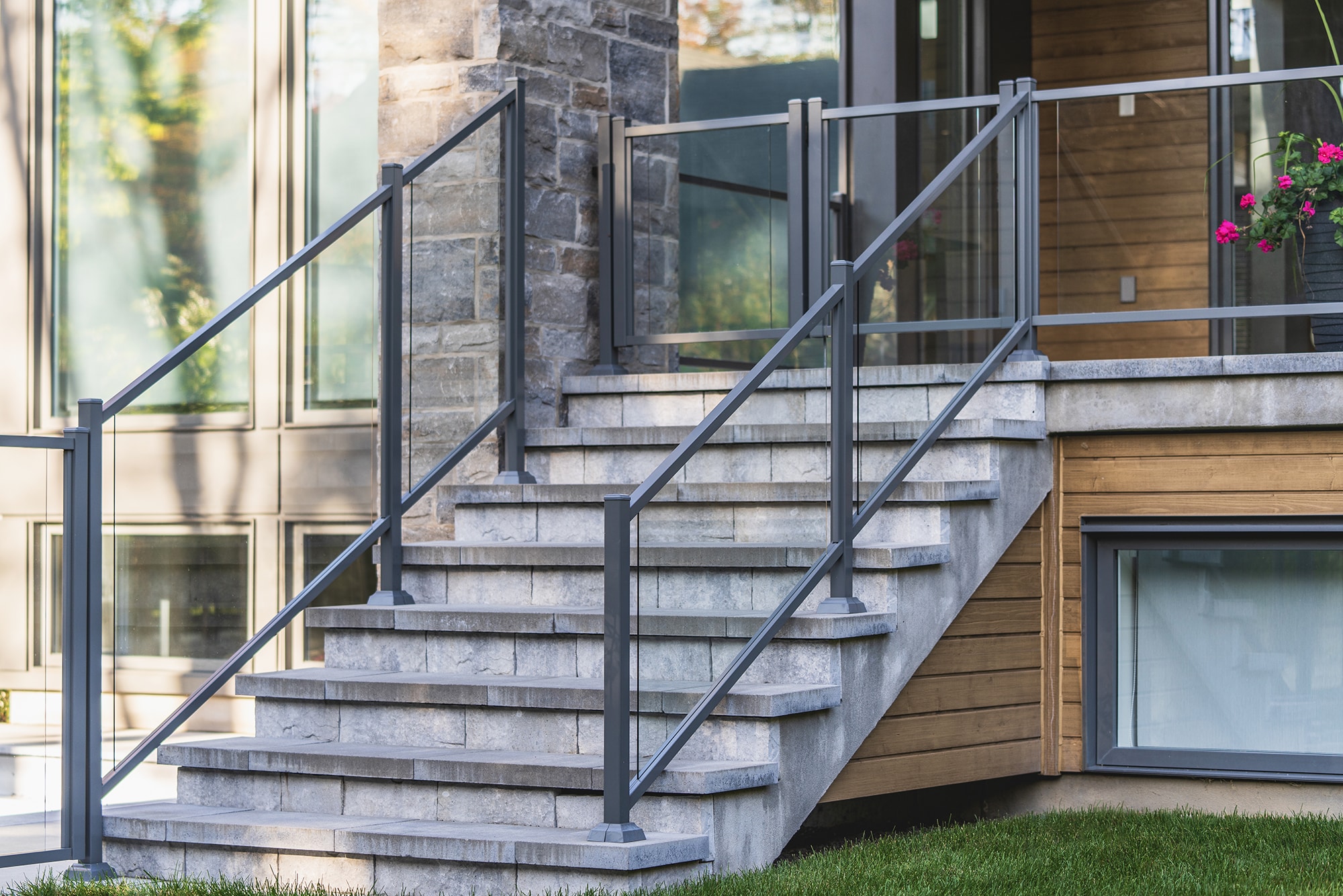 This project on Rue des Passerins in Mont-St-Hilaire showcases our Murano railings, used here as pool enclosures to provide security and transparency while respecting the elegance of contemporary design. Their sleek design blends in perfectly with the modern architecture of the residence and enhances the unobstructed view of the courtyard.