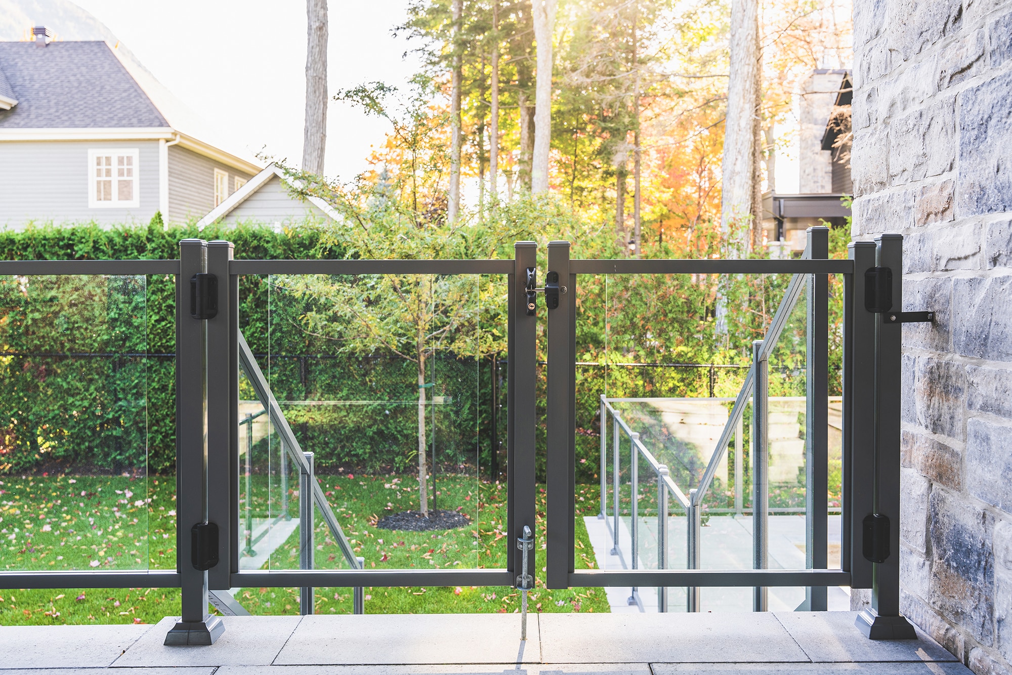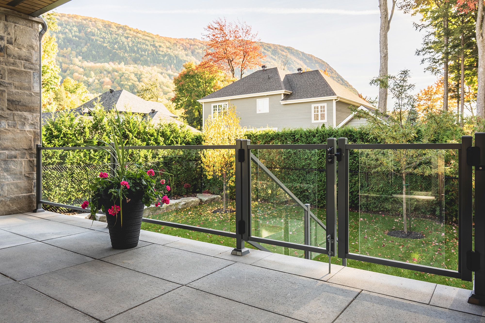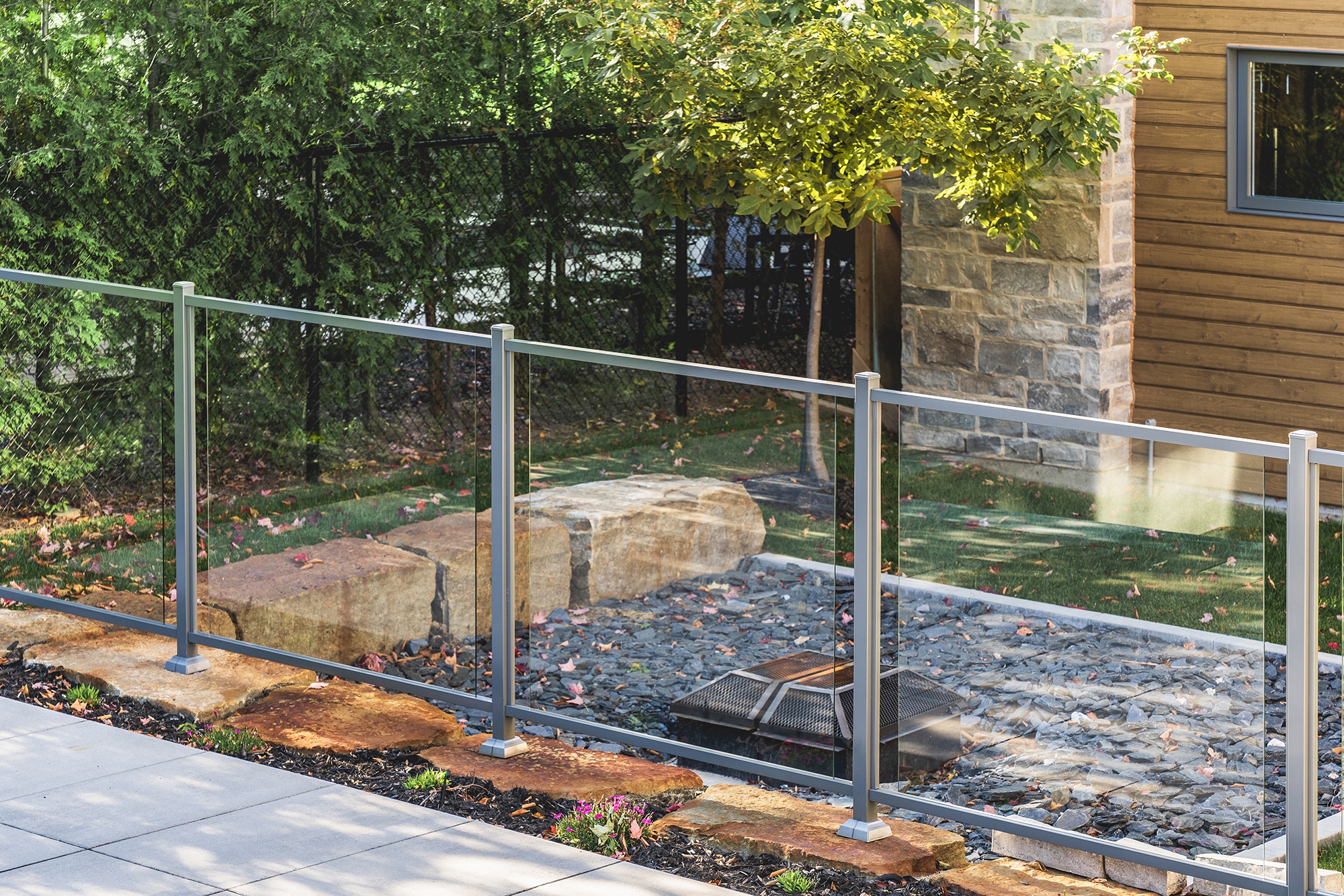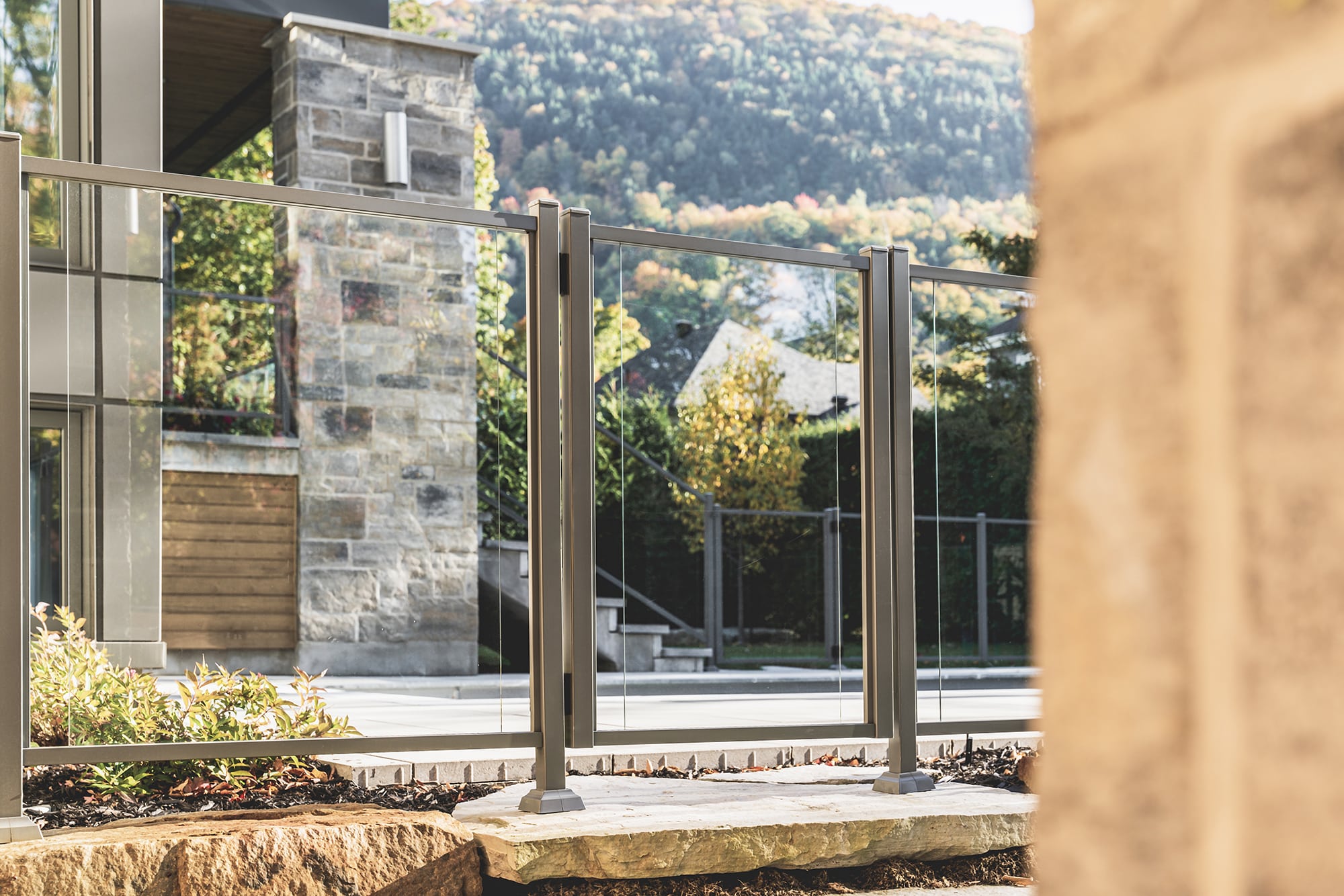 This project on Rue des Passerins in Mont-St-Hilaire showcases our Murano railings, used here as pool enclosures to provide security and transparency while respecting the elegance of contemporary design. Their sleek design blends in perfectly with the modern architecture of the residence and enhances the unobstructed view of the courtyard.