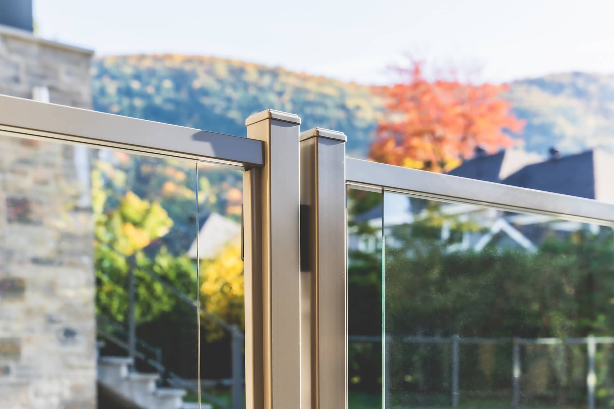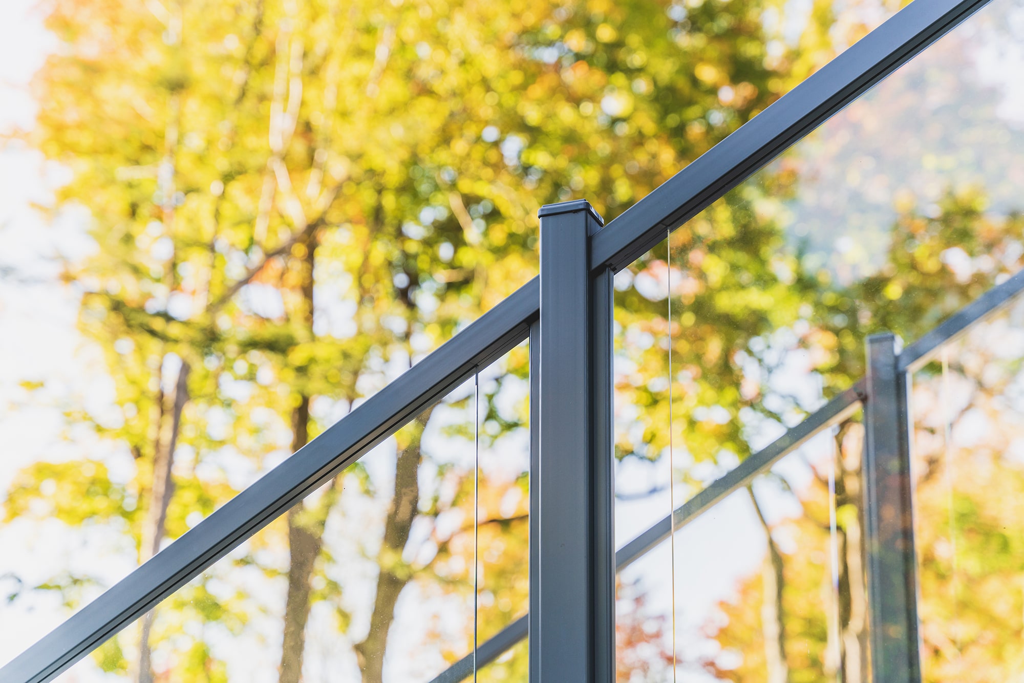 Murano railing in aluminum and glass: a refined system combining minimalist uprights and transparent panels for a high-end finish.